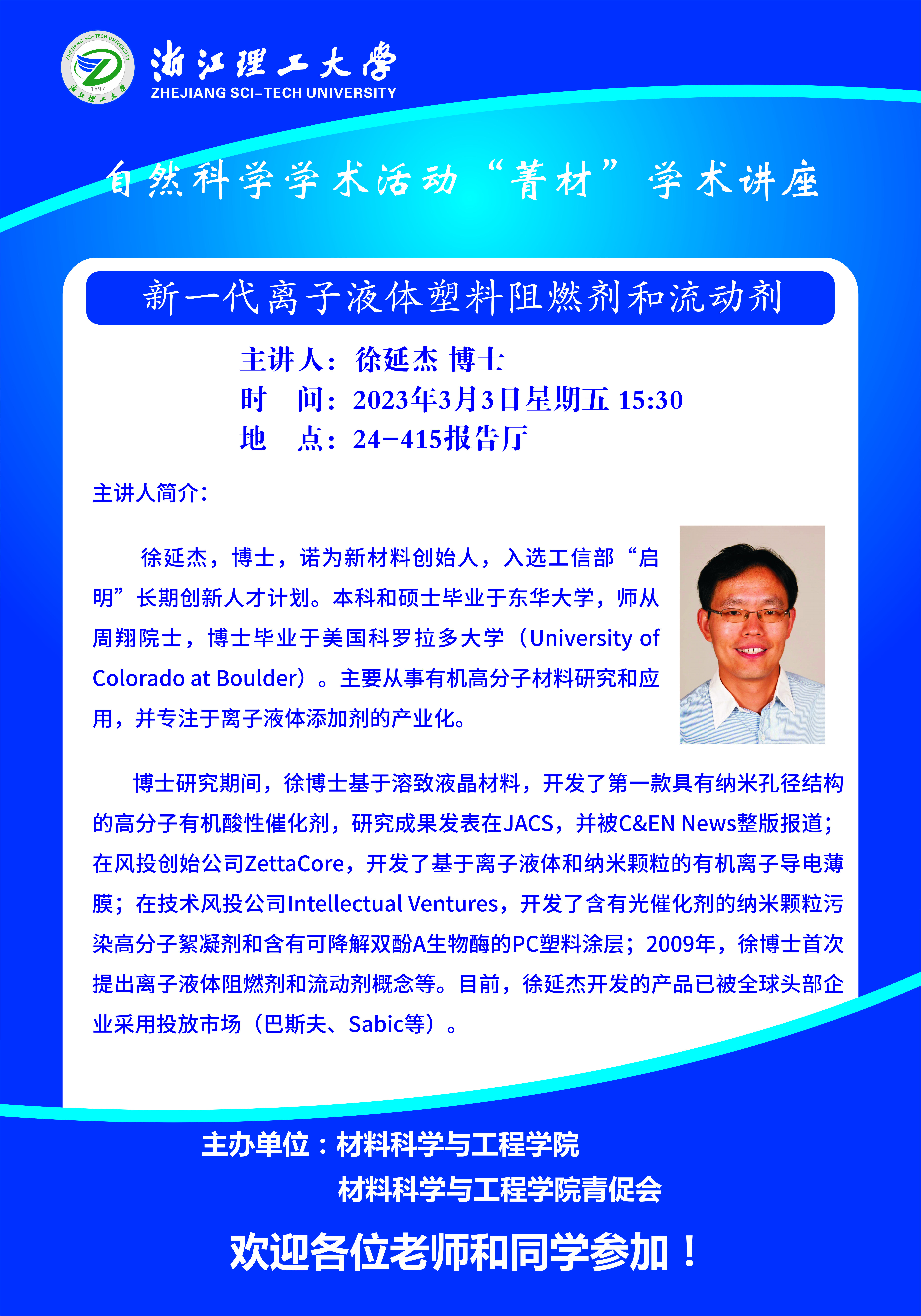 学术讲座【52】:新一代离子液体塑料阻燃剂和流动剂