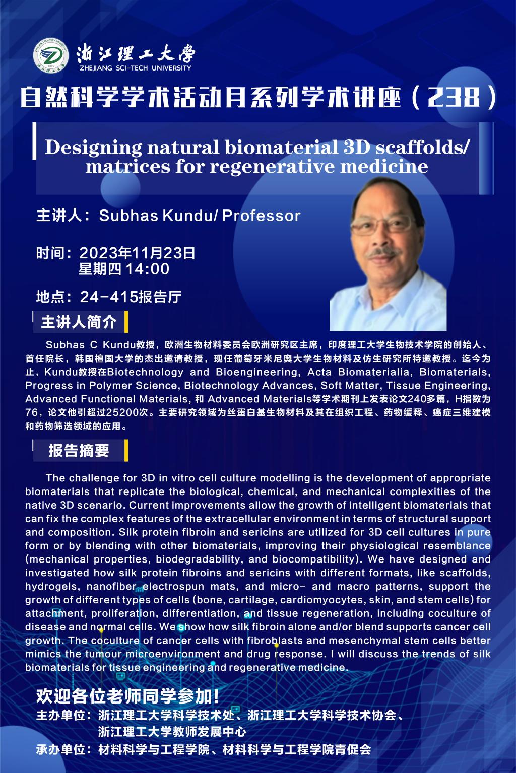 学术讲座 当前位置: 体育博彩 > 学术讲座 > 正文 学术讲座【69】:Designing natural biomaterial 3D scaffolds/matrices for regenerative medicine 作者:时间:2023-11-22浏览次数:
