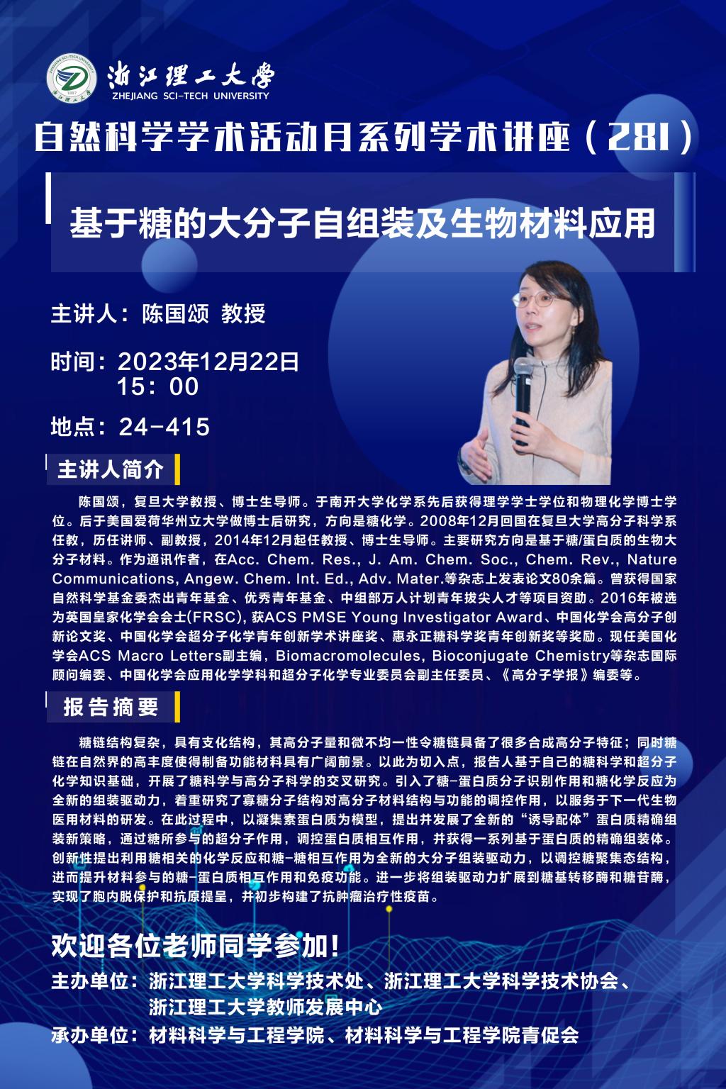 学术讲座【72】:基于糖的大分子自组装及生物材料应用
