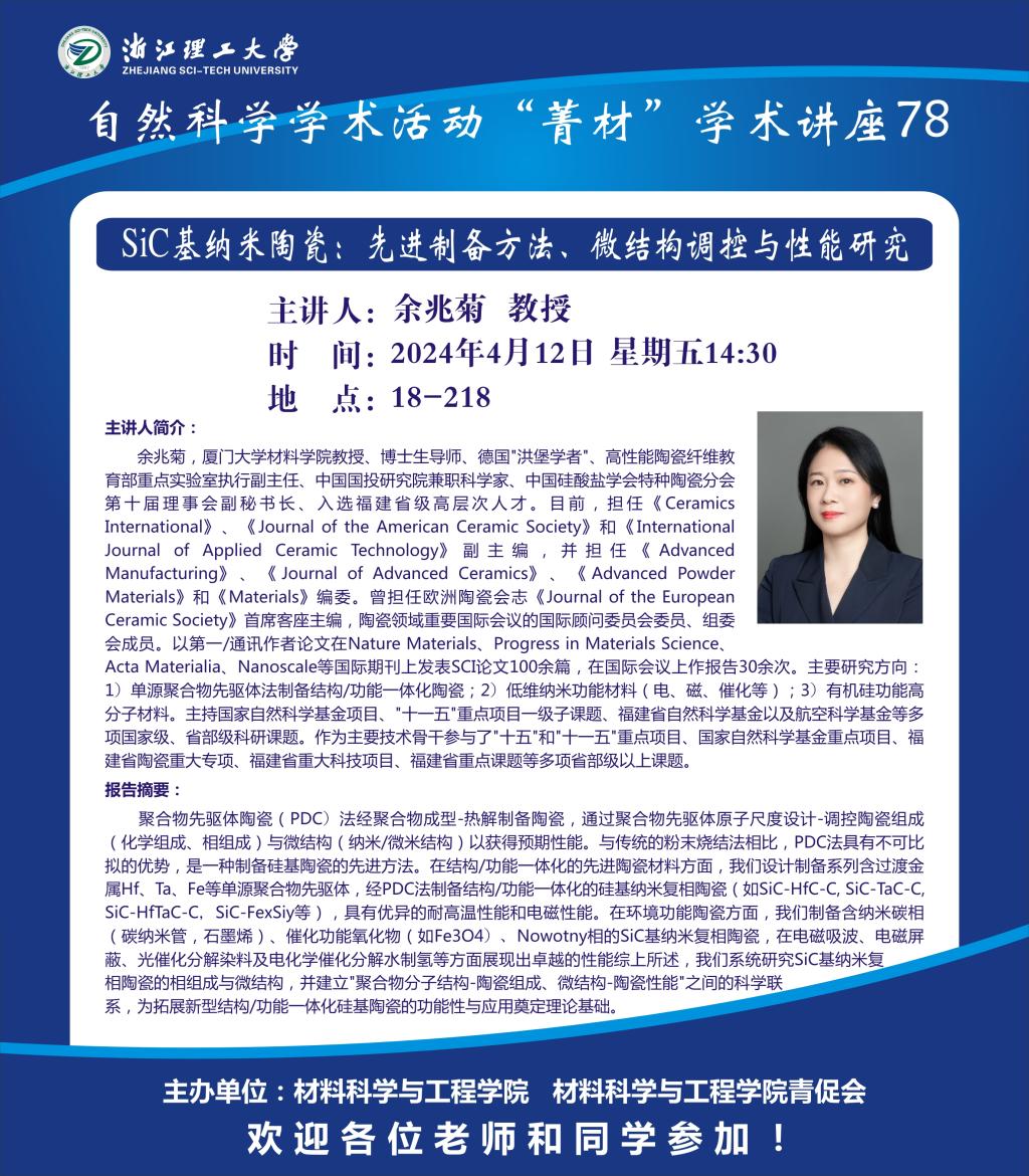 学术讲座【78】:SiC基纳米陶瓷:先进制备方法、微结构调控与性能研究