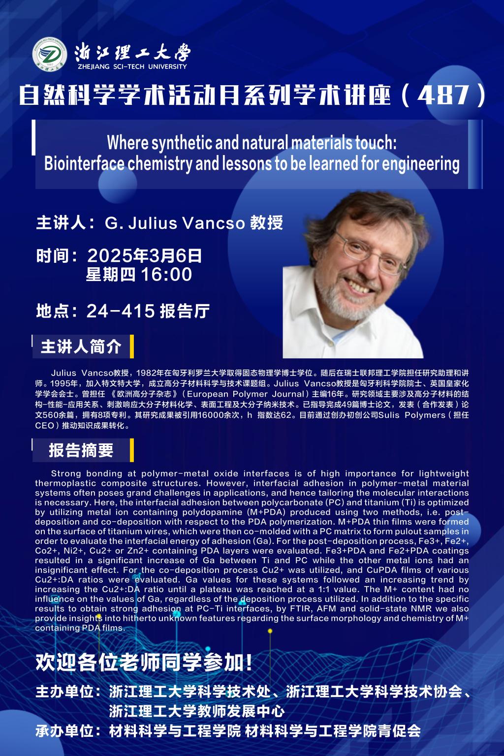 学术讲座 当前位置: 体育博彩 > 学术讲座 > 正文 学术讲座【105】:Where synthetic and natural materials touch: Biointerface chemistry and lessons to be learned for engineering 作者:时间:2025-03-03浏览次数: