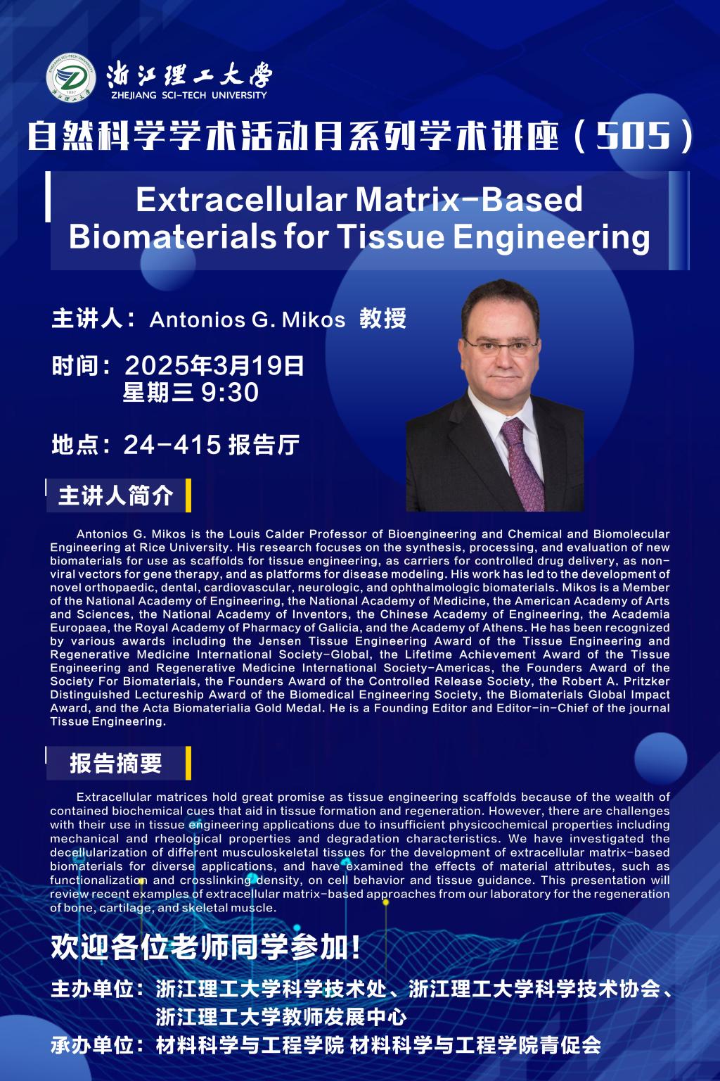 学术讲座 当前位置: 体育博彩 > 学术讲座 > 正文 学术讲座【107】:Extracellular Matrix-Based Biomaterials for Tissue Engineering 作者:时间:2025-03-14浏览次数: