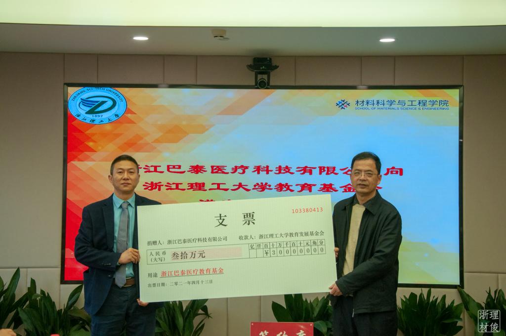 捐赠设立“巴泰医疗教育基金”,用于支持学院人才培养、科学研究等方面教育事业发展。