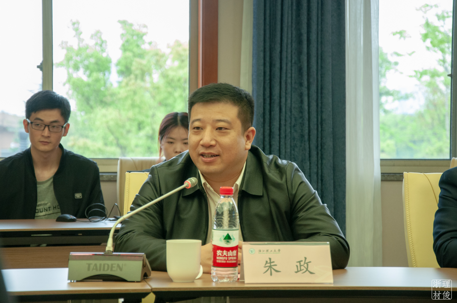 杭州市钱塘区经发科技局副局长朱政讲话,他表示,服务社会、服务企业,是高校的重要职责和使命,今天促成巴泰医疗与材料学院的合作,也是钱塘区经发科技局加强企业和高校之间合作交流的重要使命,他希望通过“巴泰医疗教育基金”的设立,强化校企紧密合作,提高人才培养质量,为学生顺利步入社会提前打好基础,为社会创造更多的价值。