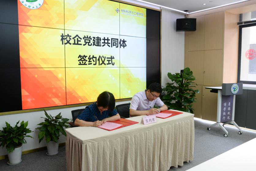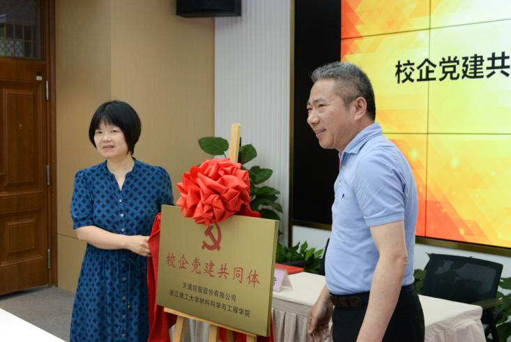 为了促进校企党建携手共进,材料学院党委与天通控股股份有限公司党委共同签署《校企党建共同体合作协议》,双方将以党建共同体为契机,以重大项目、重大平台、重大载体为支撑,在党建统领下推动校企在产学研合作、人才培养、社会服务等方面开展深入合作,促进双方党建共建、人才共育、资源共享、发展共赢,促进学院为企业发展和社会进步培养、输送更多优秀的高素质人才。张瑞标、傅雅琴为校企党建共同体揭牌。