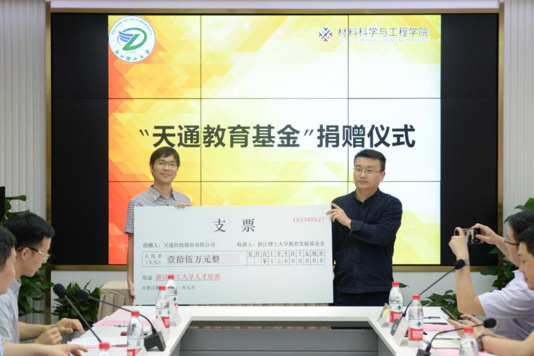 仪式上,天通控股股份有限公司向材料学院捐赠并设立“天通教育基金”,用于鼓励和支持材料学院勤奋学习、综合素质高的学生。