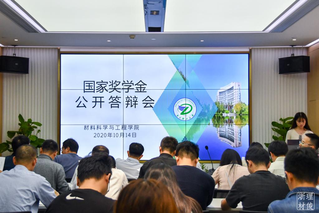 2019/2020学年研究生国家奖学金答辩会在24号楼415隆重举行,由学院党委书记傅雅琴教授,学院党委副书记周照东老师,学院学位委员会专家代表孔祥东教授、金达莱副教授,参评本次国家奖学金学生的导师代表以及19级研究生代表组成的评审委员会全体成员出席答辩会,其余各年级同学通过在线直播方式集中观看了答辩会。