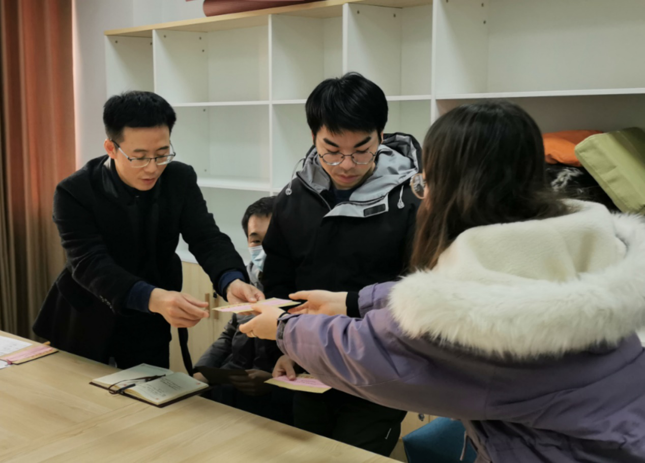随后,周照东对各位党员提出希望和要求,一是希望大家能够辩证地看待,对于家庭经济状况暂时出现的困难,要理性、积极、乐观地面对和看待,调整心态,努力奋斗;二是希望大家能够独立地担当,在学习之余主动为家庭减轻负担,为父母分忧,提升自身适应社会能力;三是希望大家能够感恩地回馈,用自己的实际行动和聪明才智,力所能及地帮助身边的人,感恩回馈学校和社会。最后,周照东为每位困难党员送上慰问金和慰问品,希望大家可以度过一个平安祥和的春节。