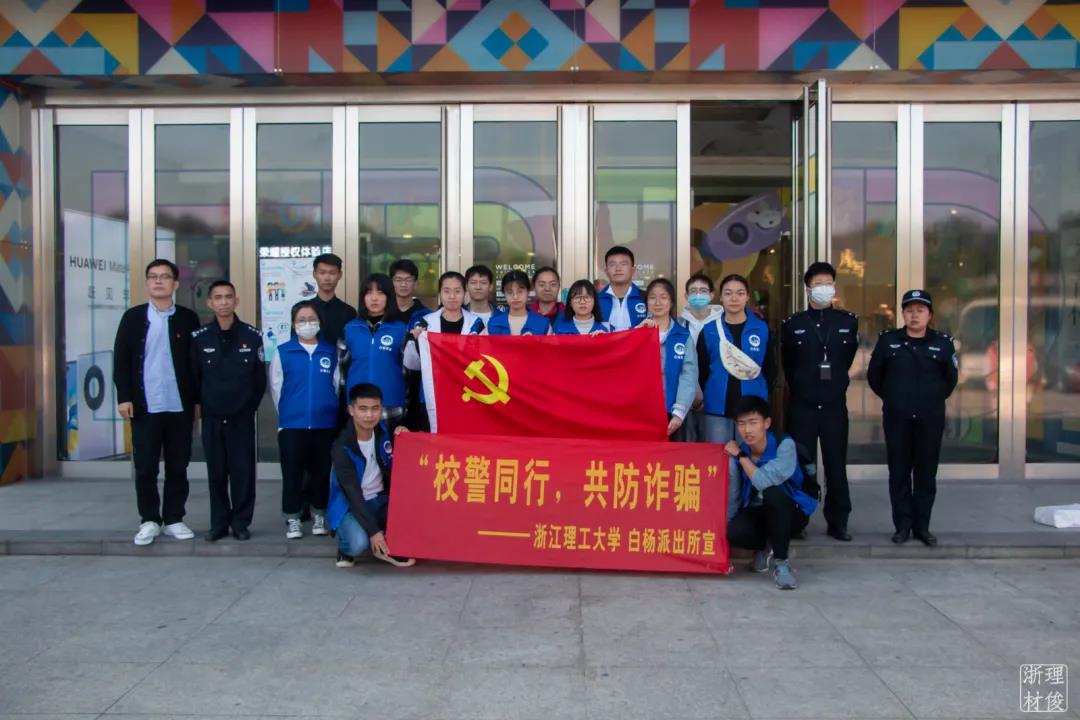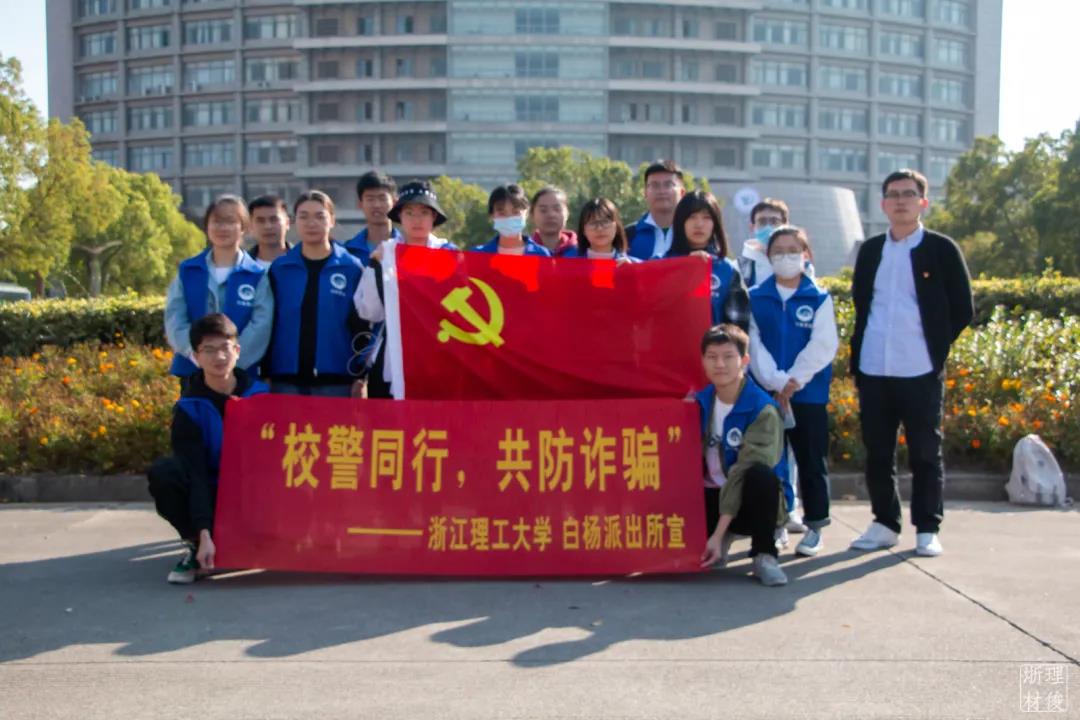 以弗雷德广场为实践场所,成功开展了“校警同行,共防诈骗”防诈骗宣传活动。来自白杨派出所的民警、材料学院本科生党员、浙理义警队队员以及志愿者共计二十余人参与了本次活动。