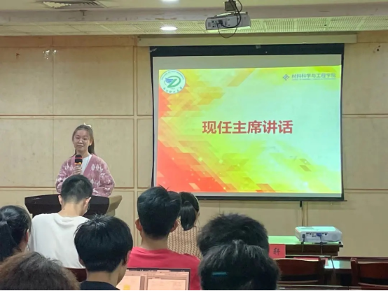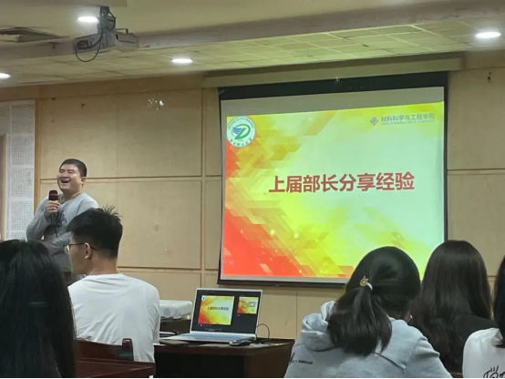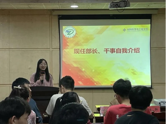 现任团委副书记杨新艳代表副书记团对各位干事的到来表示了迎,并分享了自己作为“过来人”的学习和生活经验。杨新艳围绕“多看多学,胆大心细”八个字,提醒各位新生要从身边和周围的小事情里面来汲取养分,努力提升自己,希望各位同学抓住机会,一起努力开辟出材料学院学生工作的新纪元。