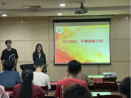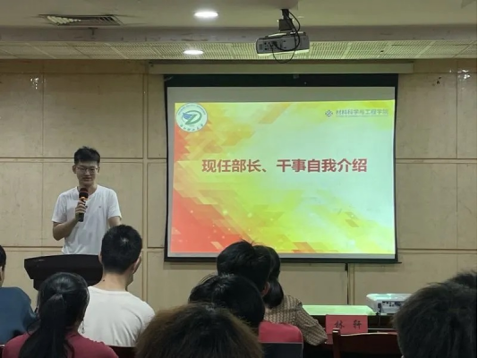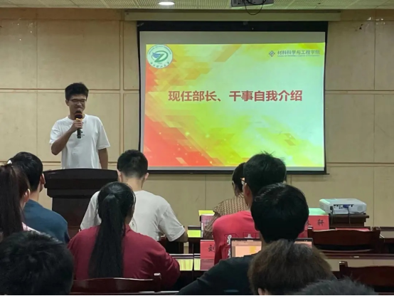 现任办公室、组织部、科研中心、志愿服务中心、校友联络中心、社团管理部等全体部长和干事进行了部门和自我介绍,向大家分享了自己未来的目标,展现出了对团委未来的期待。