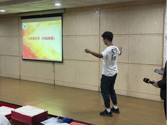 自我介绍后的破冰行动,增强了团队的协作能力。一组组选手使劲浑身解数表演选到的词语,各部门之间上演了“表情包”大战。各位副书记、部长、干事都积极上台表演,现场气氛达到高潮,在欢声笑语中促进彼此之间的感情。
