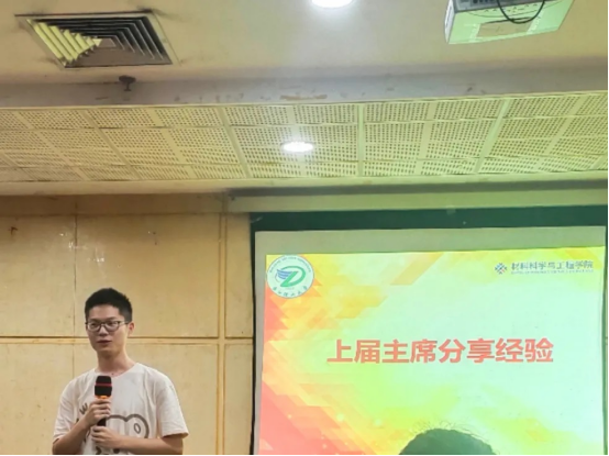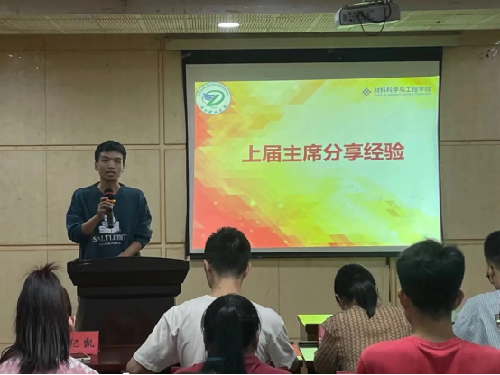 上届志愿服务中心外宣部部长王修智、组织部部长李嘉隆、班团联络部部长孙黎江、志愿服务中心管理部部长陈欣欣等人分享了前两年在团委的工作经验。同时也希望各位新部长、新干事在团委找到自己的定位并付出努力,要多和老师交流,多从前辈上汲取知识,在团委铸就更好的自己。