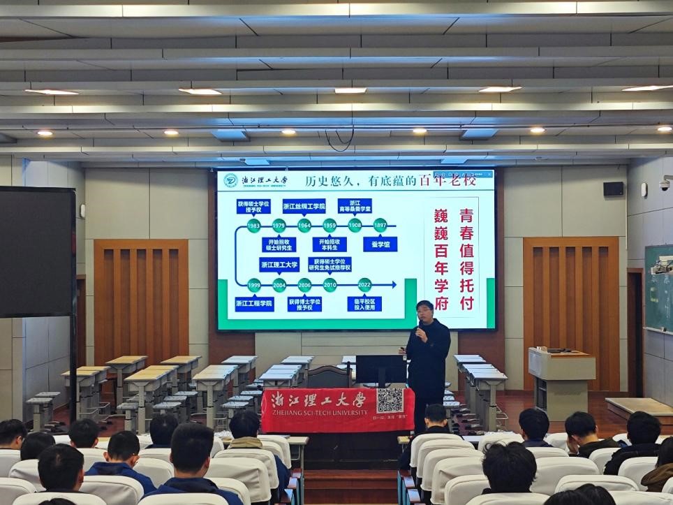 林文鑫以“国之大材 浙理有料”为主题为高三学生带来一场生动的学科宣讲。