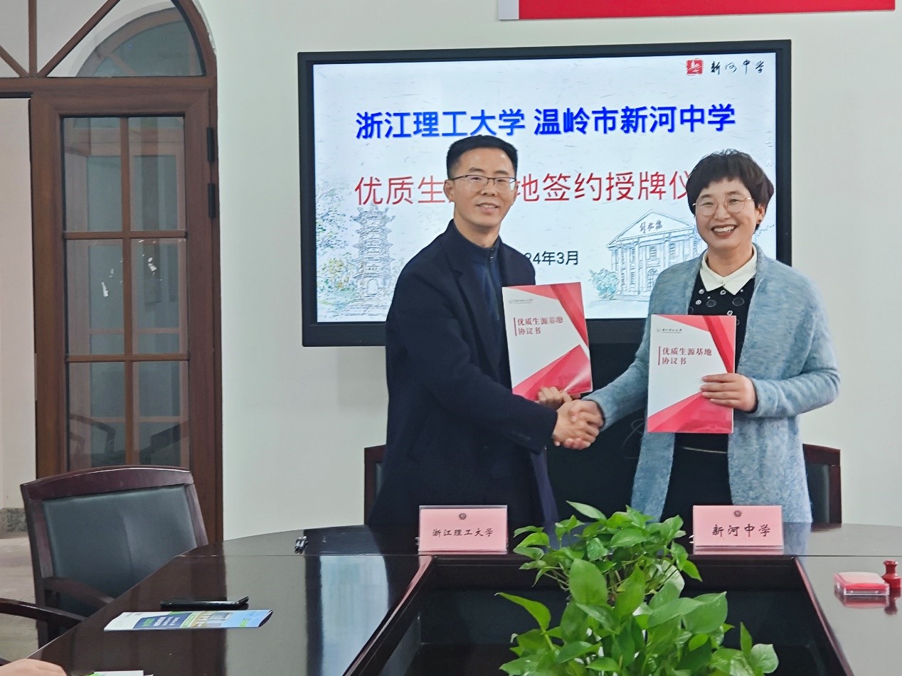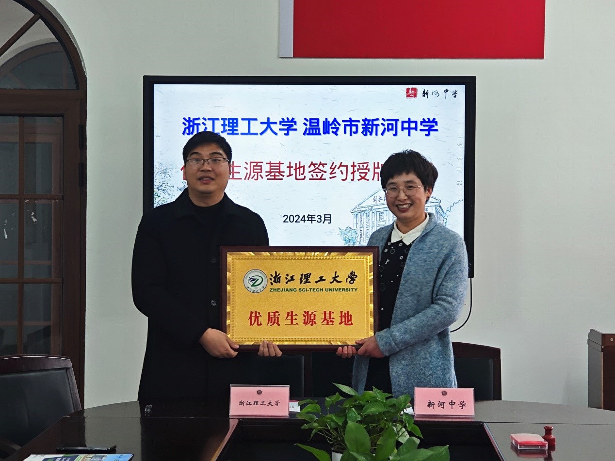 3月14日上午,材料学院赴温岭市新河中学开展“优质生源基地”签约揭牌仪式暨“三位一体”招生宣讲。新河中学副校长林霞、高三年级部主任陈霞、高三年级部副主王静刚、升学考试中心主任陶正,校招生与就业指导处副处长黄君,体育博彩