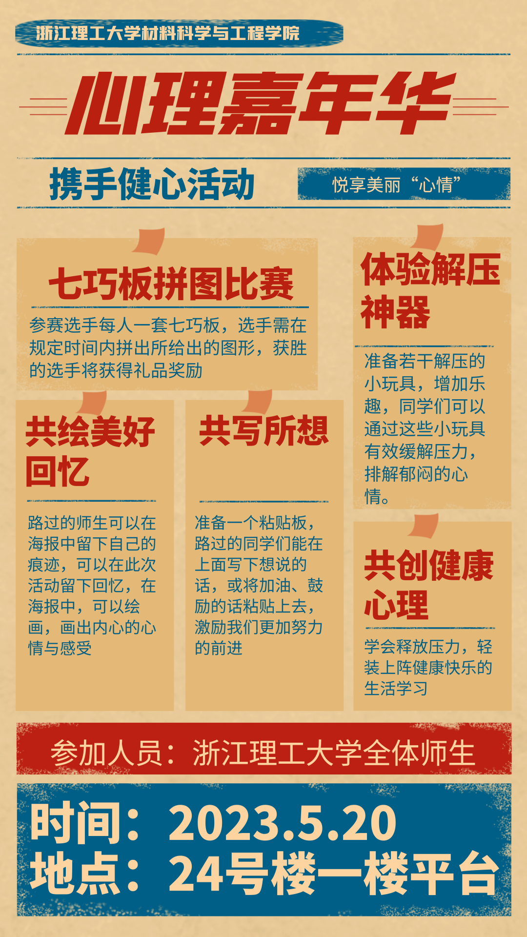 心联将于5月20日在24号楼开展心理嘉年华活动。