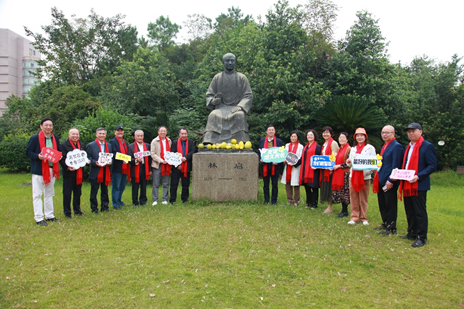办学127周年。他们来到学校的创立者、杭州知府林启先生的雕像前合影,留下共同的纪念。