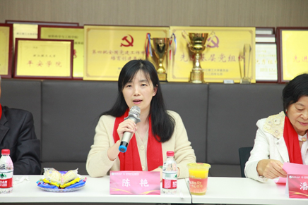上海校友会副会长、81级制丝专业校友代表王春荣讲话。表示看到母校与日俱进、蒸蒸日上,取得了一系列重大科技创新成果,大学排行不断跃升,作为毕业多年的校友由衷的高兴自豪,将一如既往关心支持母校发展。据悉,丝绸博物馆收藏有王春荣校友捐赠的多台古代织机模型。学校办学120周年校庆时,81级制丝专业校友们在钱塘校区捐建了校园文化景观石——“恋”字石,以表达对母校和丝绸的“爱”。
