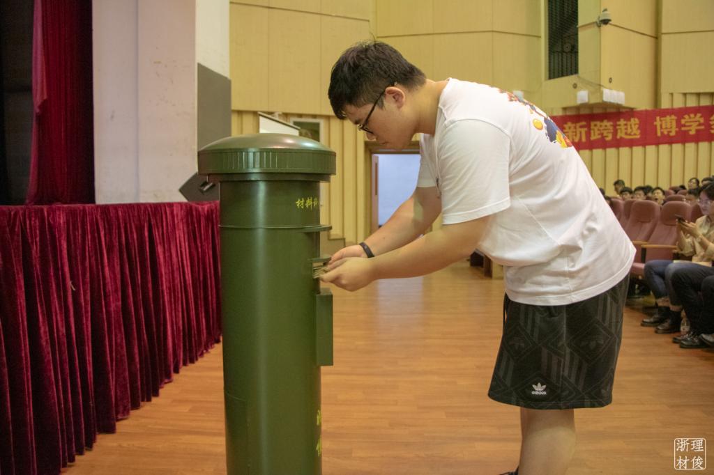 开学典礼的尾声,举行了梦想礼仪式。班级代表将同学们满载梦想的信,依次投入时光邮筒之中。待大家毕业的时候,学院将发还大家最初的“梦想”,希望毕业时的你可以不负现在的自己!在今天这样一个特殊的日子,恰好也是现场2位同学的生日,同时共有32名同学在九月迎接自己的生辰,全体师生用热烈的掌声为他们送去了祝福。