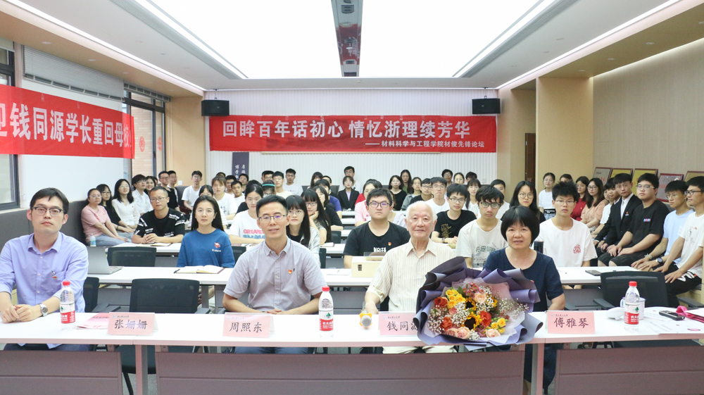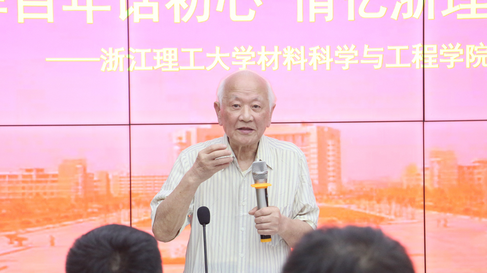 在24号楼415报告厅举行回眸百年话初心,情忆浙理续芳华党史学习教育专题党课、“材俊先锋”论坛暨校友分享会。邀请86岁老校友,原浙江省轻工业厅副厅长、党组副书记,浙江丝绸科学研究院院长、党委书记,浙江省丝绸公司经理、党委书记钱同源先生来校为大学生党员们讲党课。出席活动的有材料学院党委书记傅雅琴,党委副书记周照东、全体辅导员以及新发展预备党员、毕业班党员代表等80余人。
