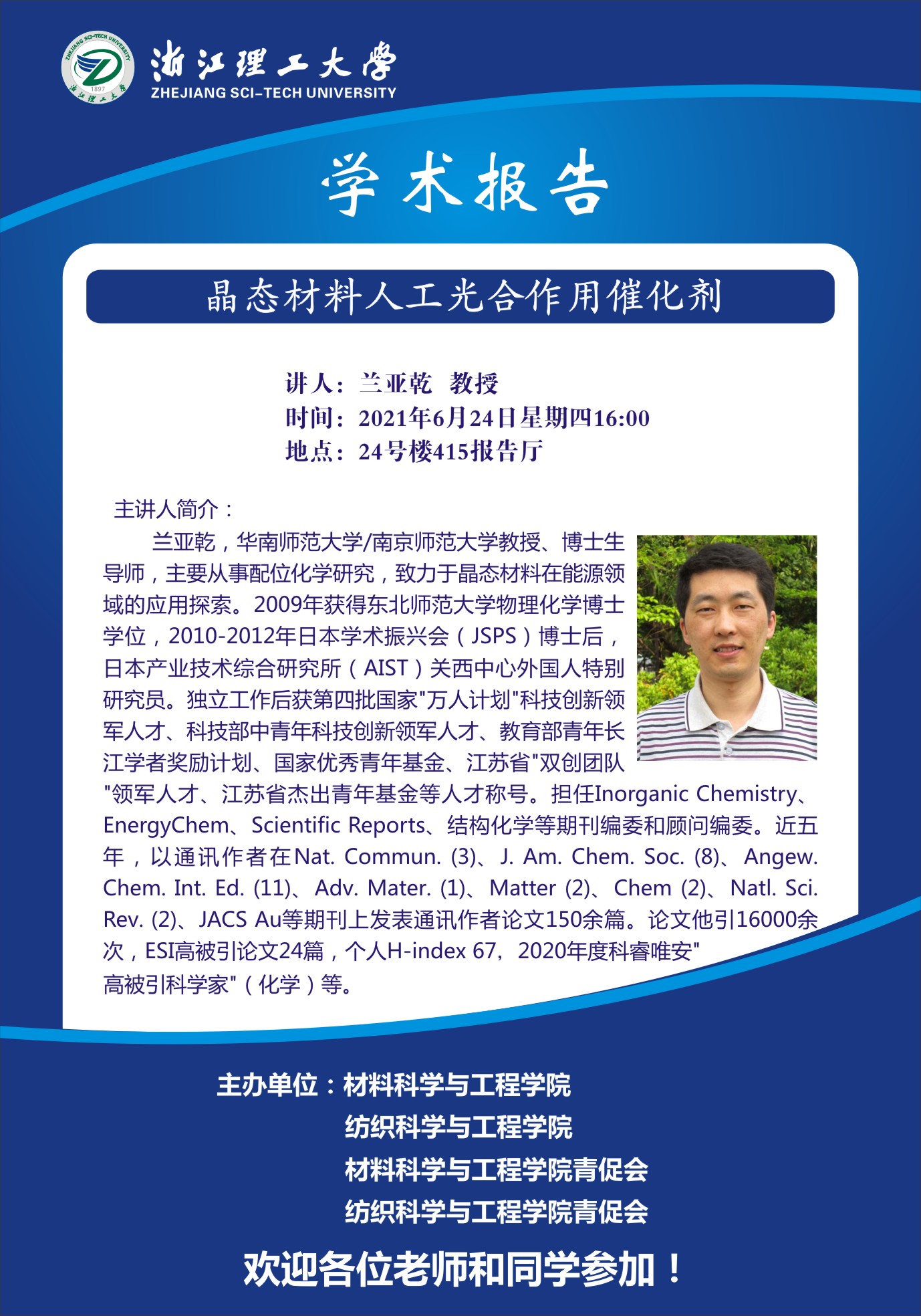 学术讲座【24】:晶态材料人工光合作用催化剂