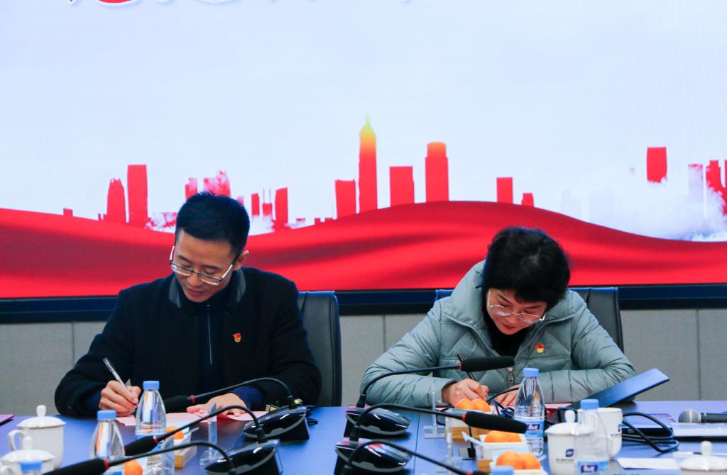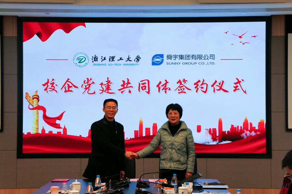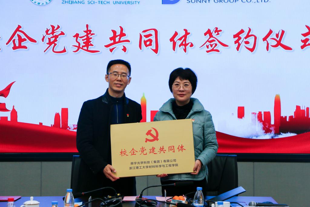 与舜宇光学科技(集团)有限公司在舜宇新基地B-1 一号会议室举行党建共同体签约揭牌暨党的十九届六中全会精神联学会议。