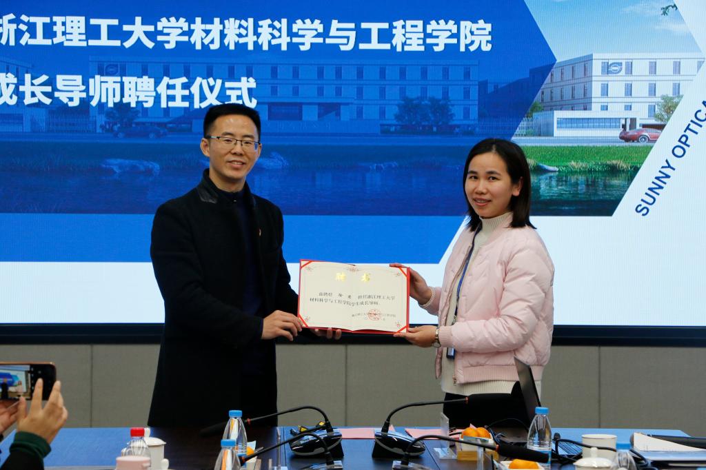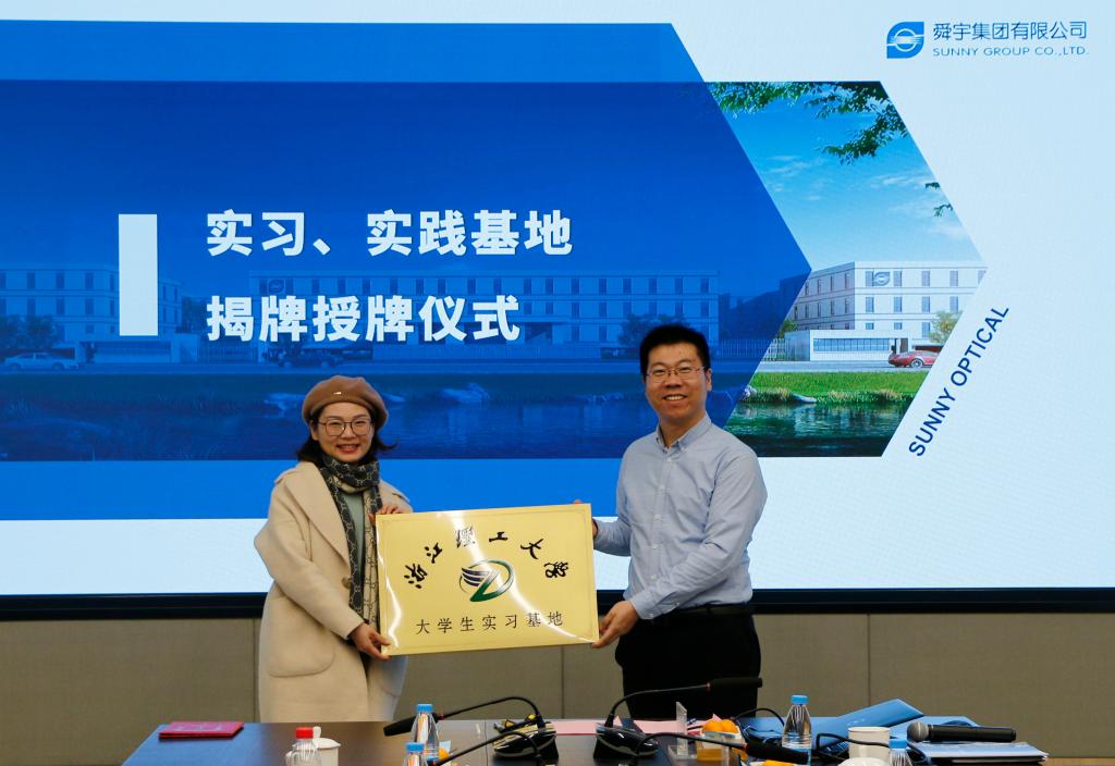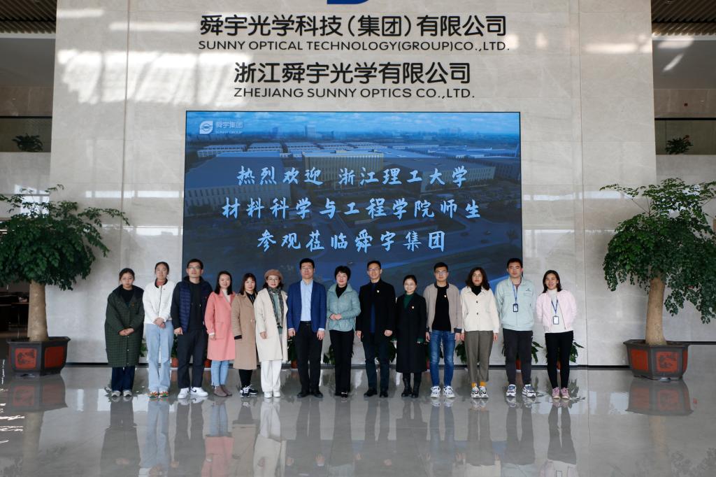 舜宇集团党委副书记诸杏珍、党群办主任助理陈红芬、人力资源部副部长焦树坤、招聘与配置课课长姜淑飘、车载光学项目质量BP二课副课长苏琪映(校友)、光学镀膜技术助理工程师刘东旭(校友)、招聘经理徐君、招聘经理梁潇文,体育博彩