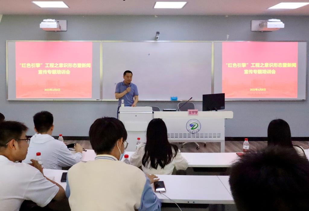 为进一步强化学校意识形态工作,进一步适应新时代新闻宣传工作需要,提升新闻宣传工作水平。68日下午,体育博彩 联合建筑工程学院、理学院举办“红色引擎”工程之新闻宣传专题培训会。会上邀请校党委宣传部(教师工作部)部长助理王宁宁、新闻宣传科科长石丛珊和体育博彩 党委副书记、纪委书记周照东开展培训。材料学院、建筑工程学院、理学院等三个学院行政办公室教师、班主任、学生干部等参加培训。会议由建筑工程学院党委副书记、纪委书记李孝明主持。
